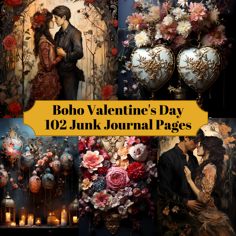 Embrace the free-spirited romance with our Boho-themed Valentine's Day digital junk journal. Featuring earthy tones, whimsical patterns, and eclectic motifs, this journal offers a carefree space for capturing memories, doodling, and expressing your creativity amidst the bohemian charm and laid-back elegance of boho-inspired Valentine's Day celebrations, perfect for celebrating love with a touch of wanderlust and artistic flair.