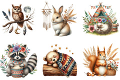 Discover the charm of our Boho Woodland Animal Clipart Bundle, featuring whimsical forest creatures perfect for nursery decor and creative projects.