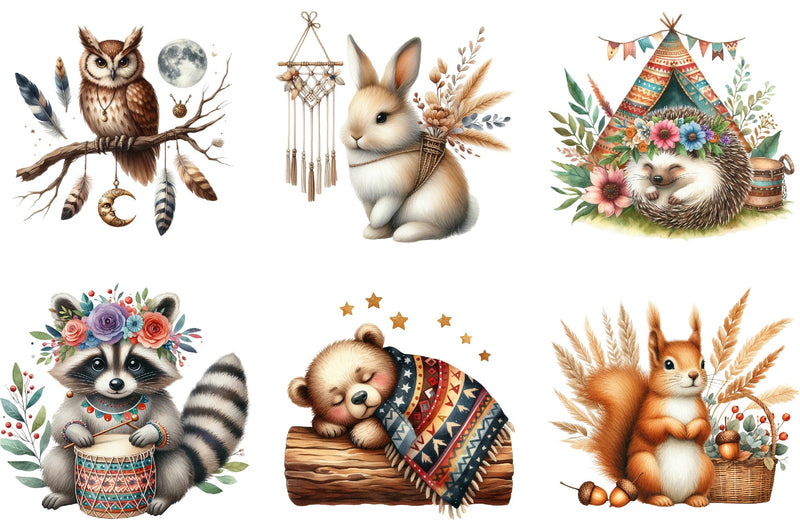 Transform your designs with our unique Boho Woodland Animal Clipart, offering a delightful mix of rustic and whimsical elements for any artistic endeavor.