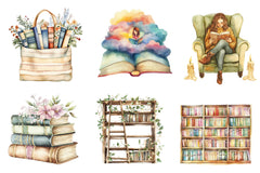 Read with this Book Girl And Library Clipart Bundle, featuring literary girl designs, perfect for educational people crafts.