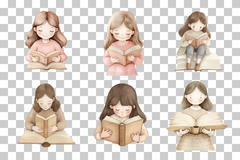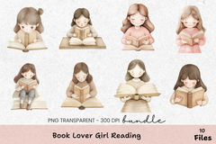 Book Lover Girl Reading Clipart Bundle