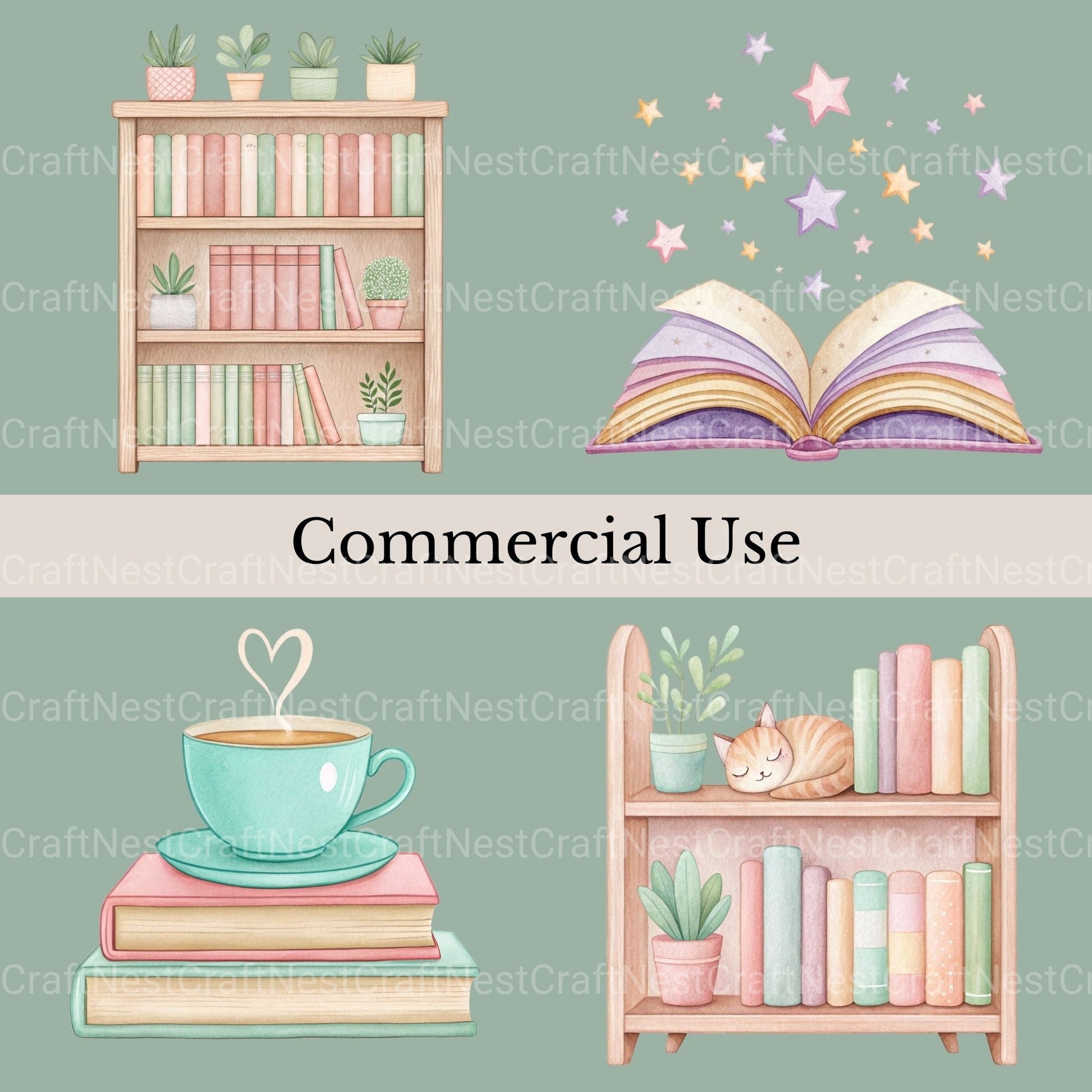 Read with this Bookish 15 Clipart Bundle, featuring book lover designs, perfect for literary hobby crafts.