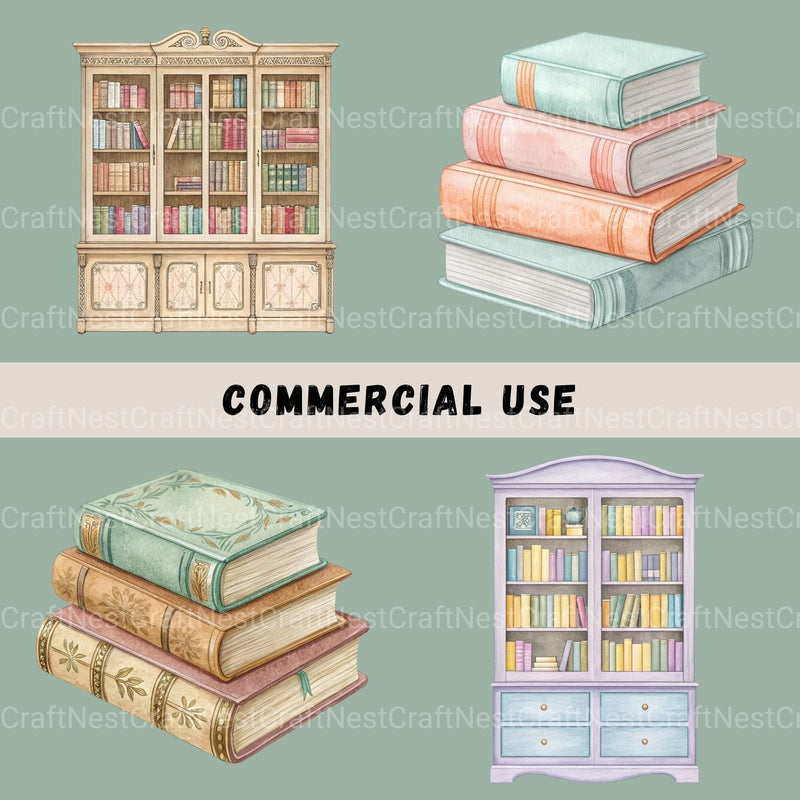 Read with this Books & Bookshelves 15 Clipart Bundle, featuring book shelf designs, ideal for book hobby crafts.