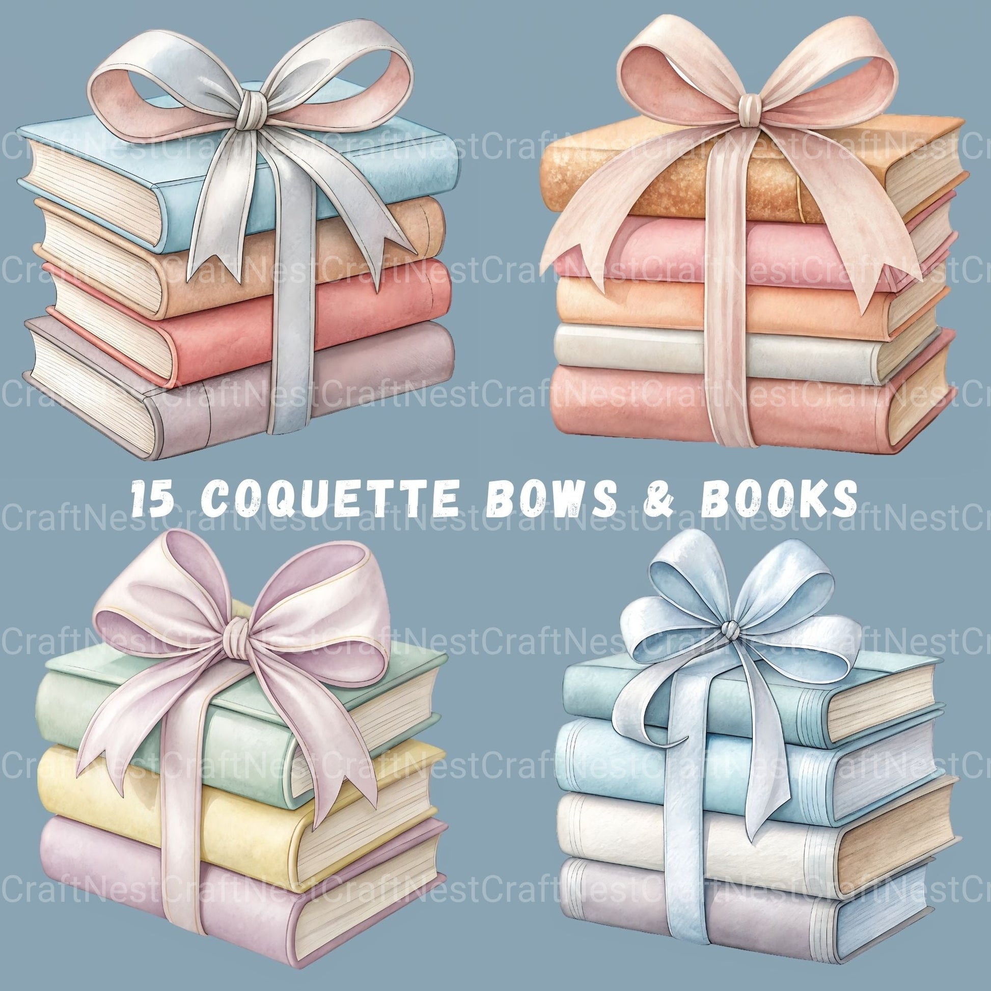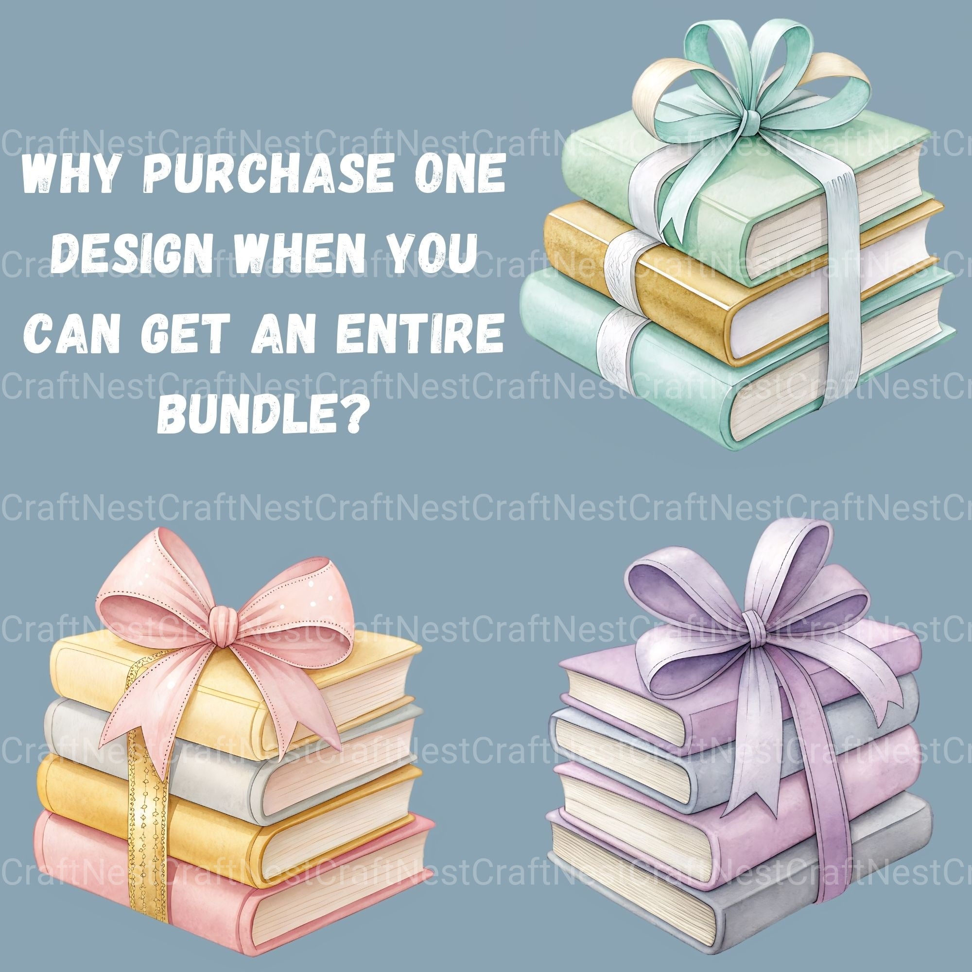 Read with this Books N Bows 15 Clipart Bundle, featuring book bow designs, perfect for book fashion crafts.