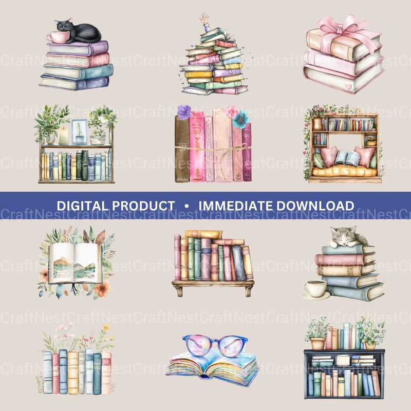 Study with this Books Updated 12 Clipart Bundle, featuring modern book designs, perfect for literary hobby crafts.