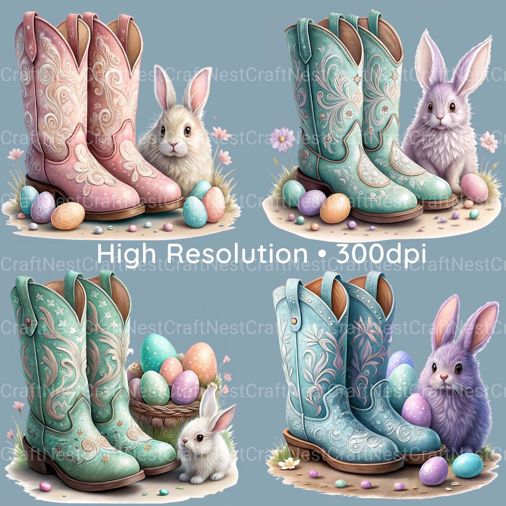 Hop with this Boots N Bunnies 15 Clipart Bundle, featuring bunny boot designs, perfect for spring animal crafts.