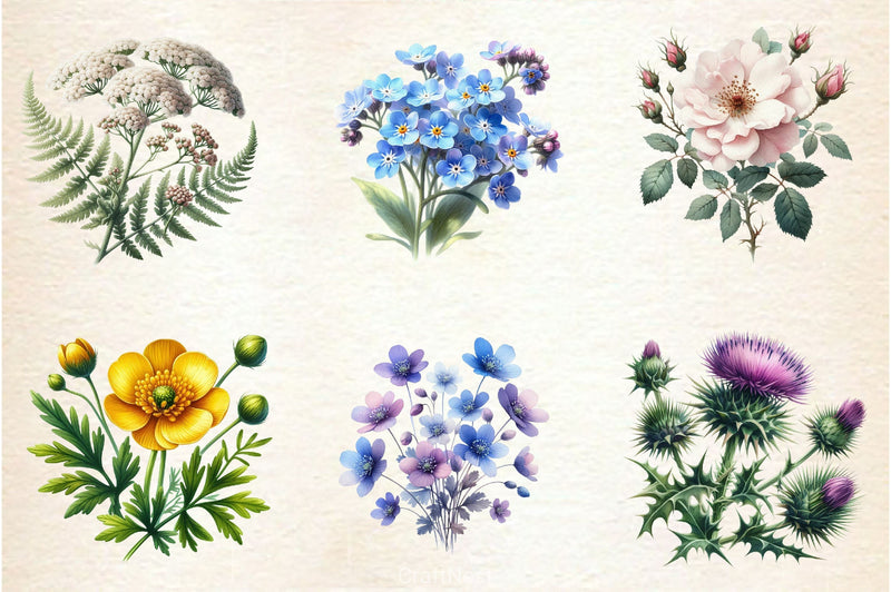 Wild with this Botanical Forest Wildflower Clipart Bundle, featuring woodland flower designs, perfect for natural garden crafts.