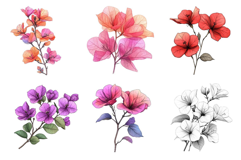 Bloom with this Bougainvillea Flower Clipart Bundle, featuring tropical vine flower designs, perfect for exotic garden crafts.