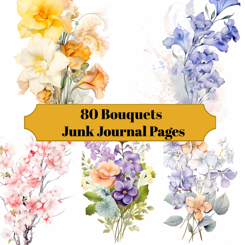 Revel in the timeless elegance of floral arrangements with our Bouquets digital junk journal. Each page is adorned with illustrations of stunning bouquets, delicate posies, and fragrant blossoms, inviting you to bask in the beauty and fragrance of nature's finest creations, offering a delightful journey through a world where every petal is a brushstroke of elegance and every bouquet is a symphony of color and scent.