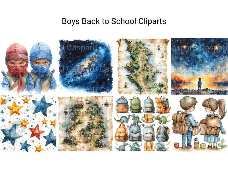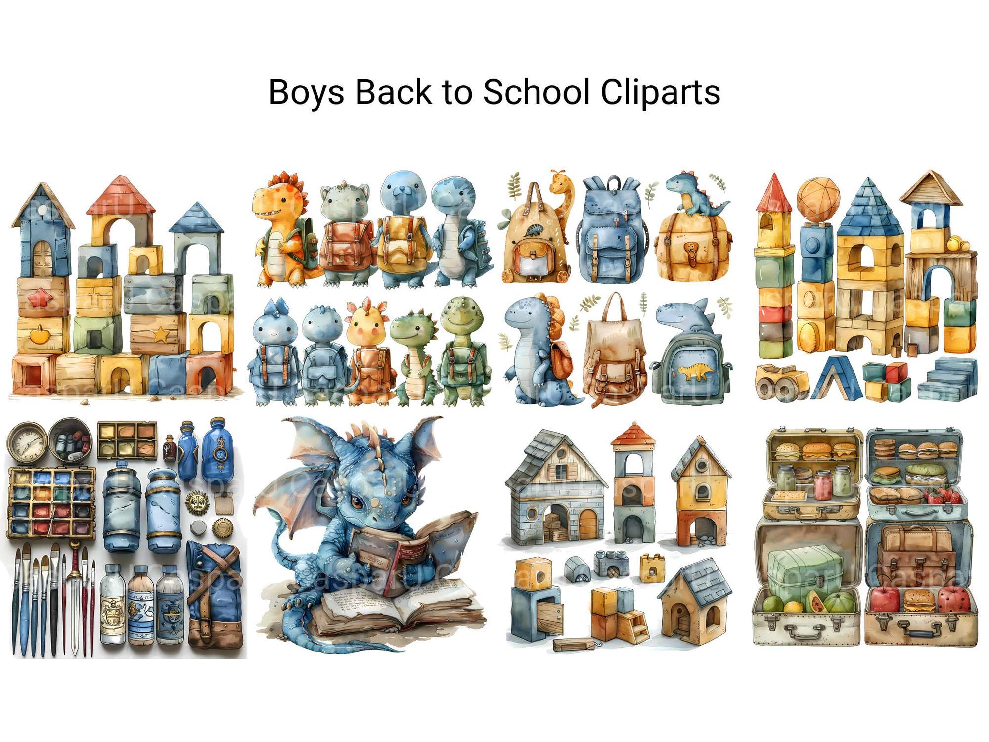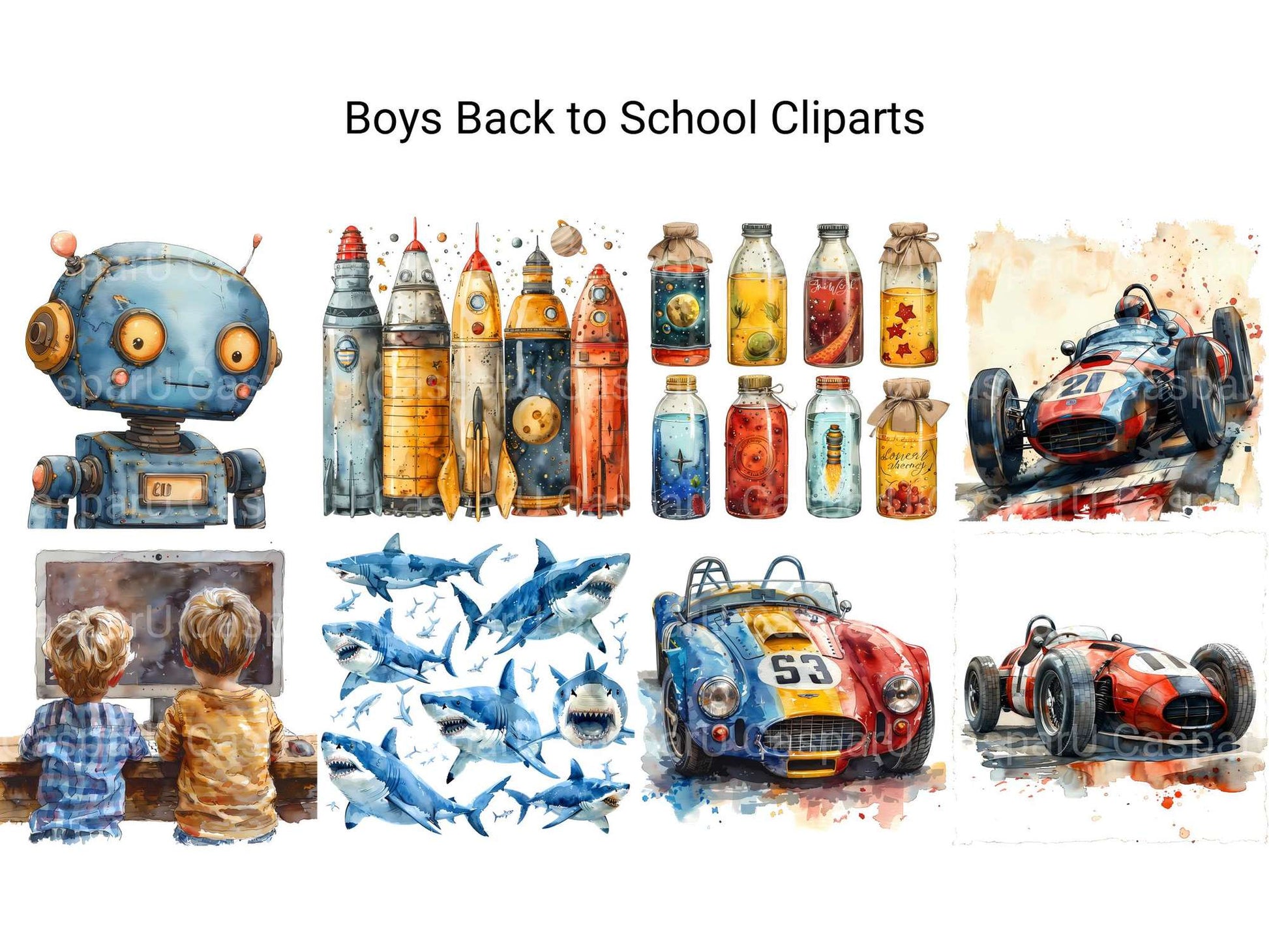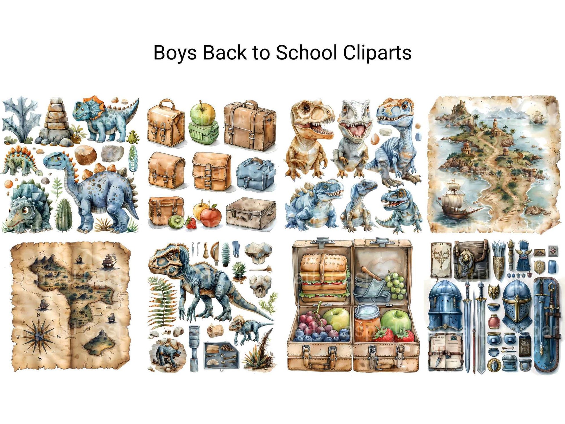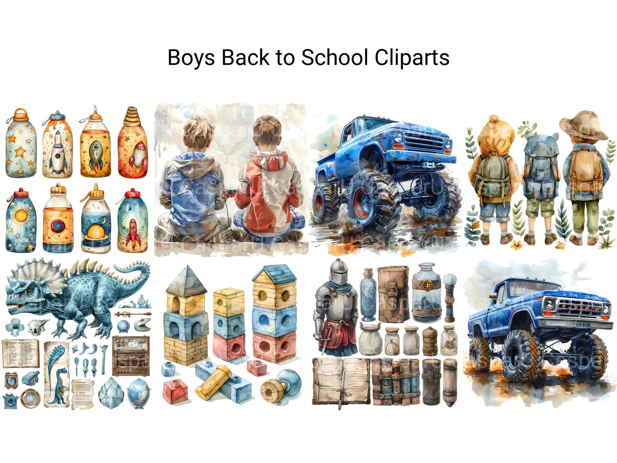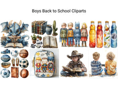 Capture the excitement of young scholars with cliparts centered around boys and their favorite school activities. These playful illustrations are perfect for projects with a focus on boys heading back to school.