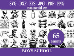 Capture the energy of young boys ready for a new school year with these SVGs. From playful characters to school essentials, these designs are ideal for boy-centered creations.