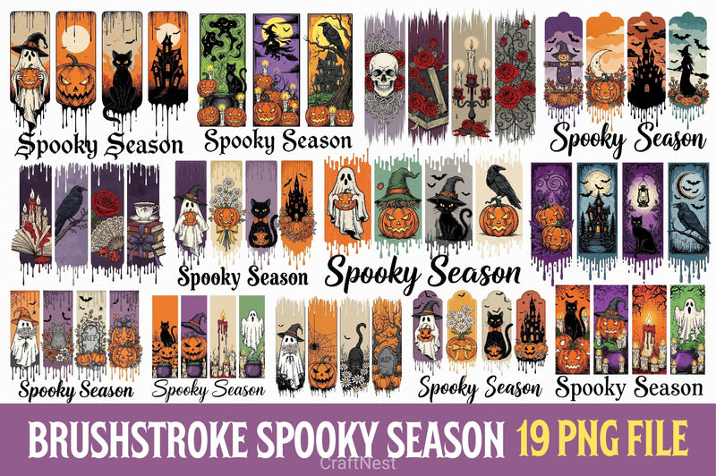 Artistic brushstroke Halloween designs for spooky autumn projects.