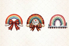Country buffalo plaid Valentine rainbows for rustic romantic projects.