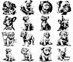 Honor the loyalty and steadfast companionship of Bulldogs with our endearing collection of SVGs paying homage to this iconic breed. Whether you're a Bulldog enthusiast or simply captivated by their wrinkled faces and gentle demeanor, our SVG files capture the essence of Bulldog charm in delightful detail. Let these designs adorn your crafts and creations, adding a touch of canine charisma to everything from home decor to apparel for Bulldog aficionados.