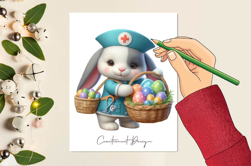 Care with this Bunny Nurse Easter Clipart Bundle, featuring nurse bunny designs, perfect for medical Easter crafts.