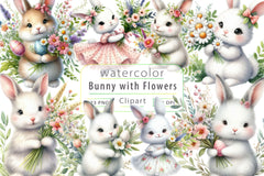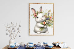 Adorable bunnies surrounded by beautiful flowers for spring projects.