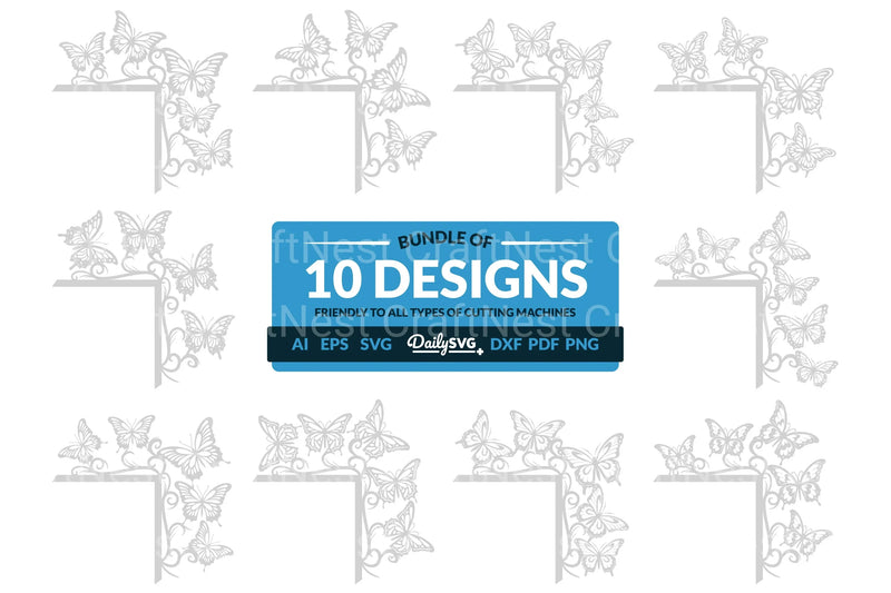 Butterflies Door Corner Laser Cut Clipart SVG Bundle