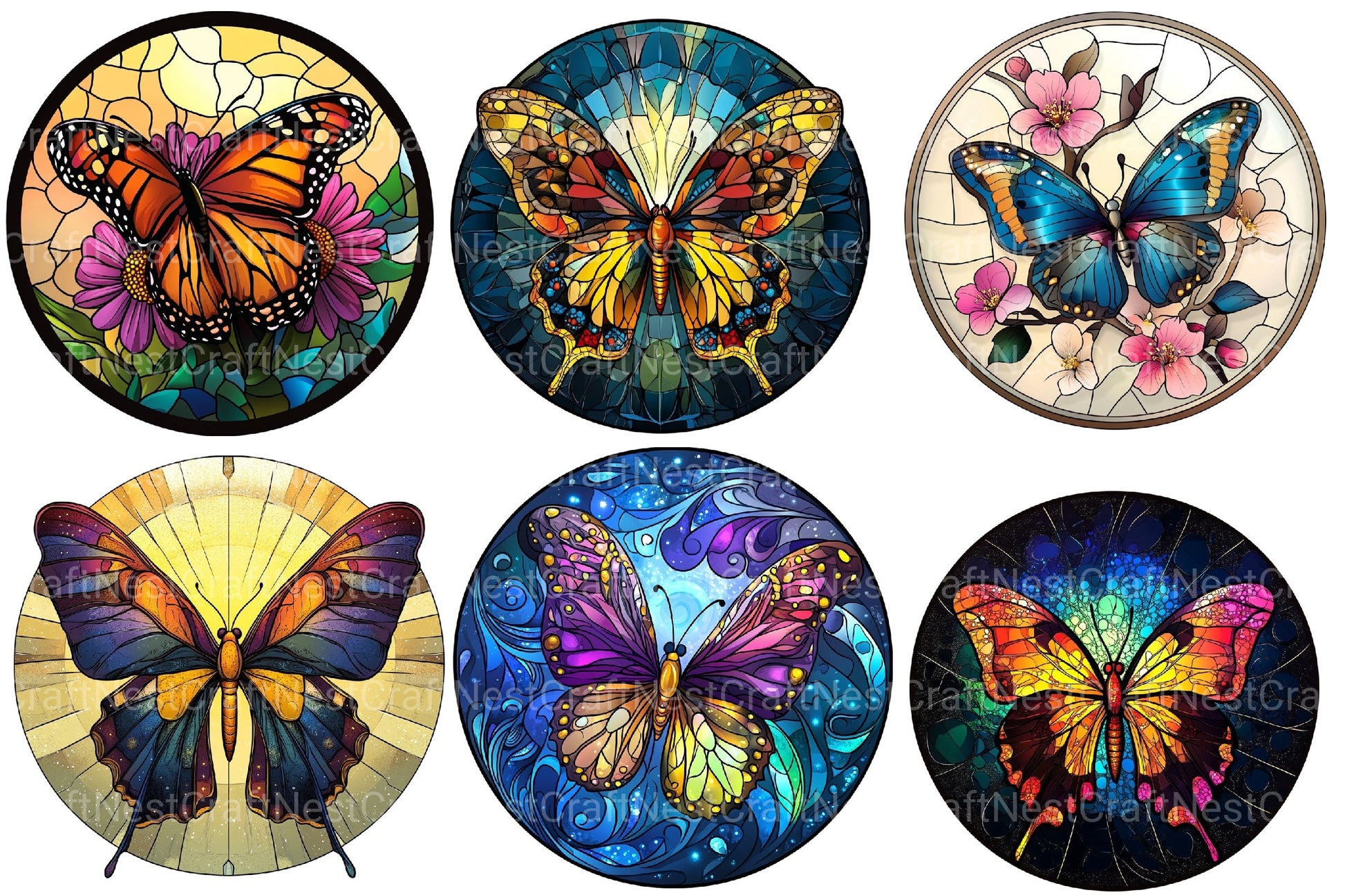 Flutter with this Butterfly Round Stained Glass Clipart Bundle, featuring artistic butterfly designs, ideal for elegant nature crafts.