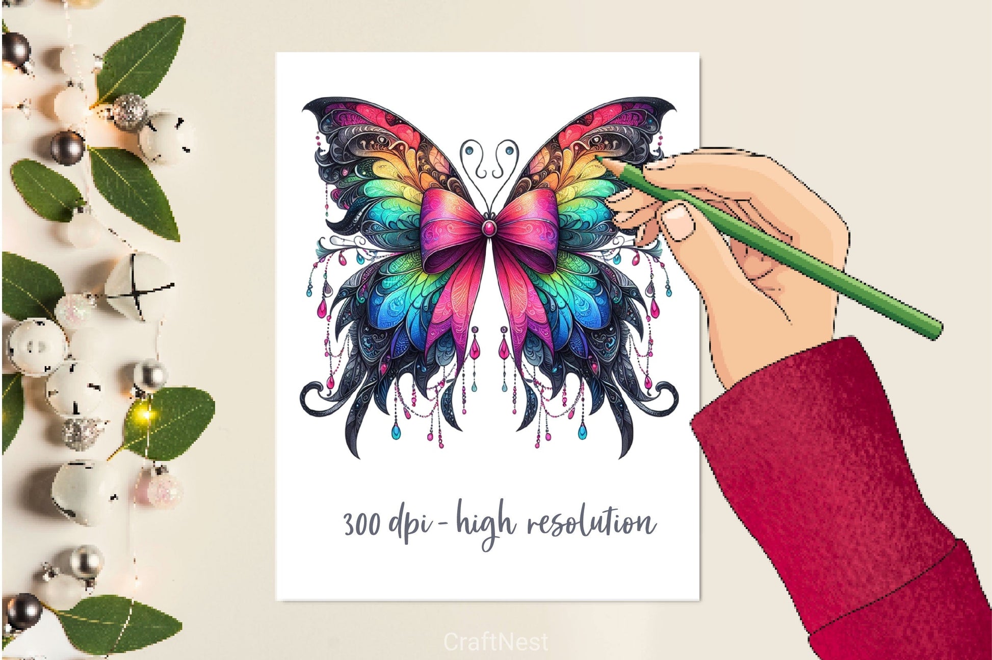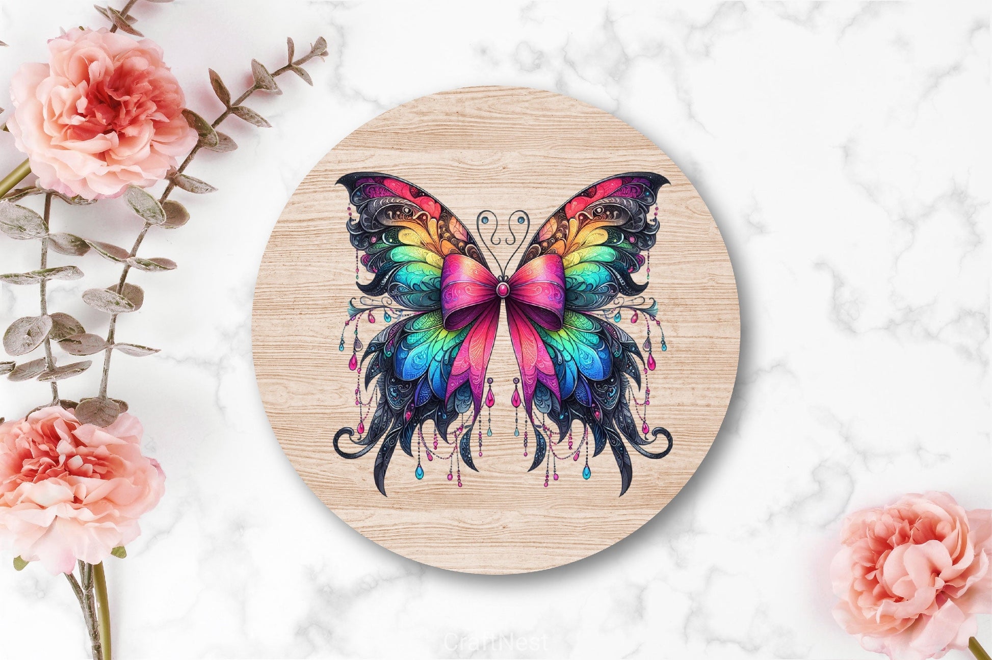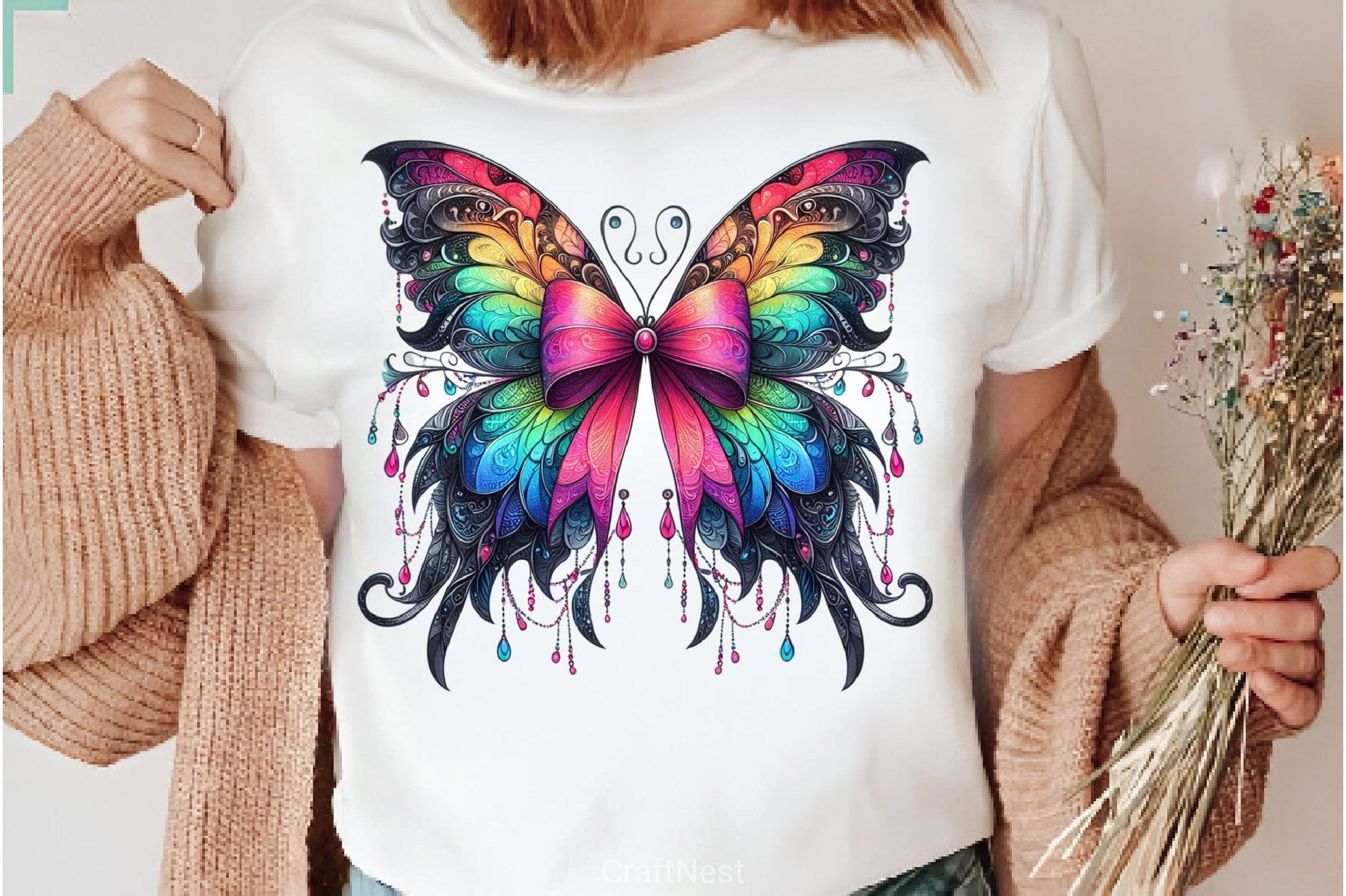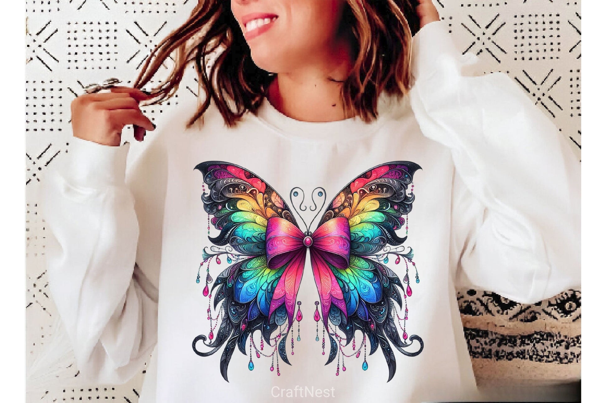 Flutter with this Butterfly With Bow Clipart Bundle, featuring decorated butterfly designs, perfect for girly nature crafts.