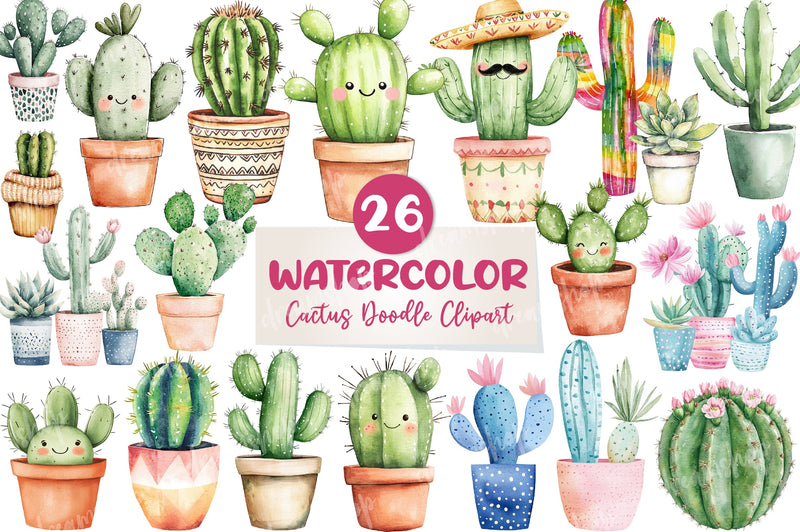 Sketch with this Cactus Doodle Clipart Bundle, featuring hand-drawn cactus designs, ideal for artistic nature crafts.