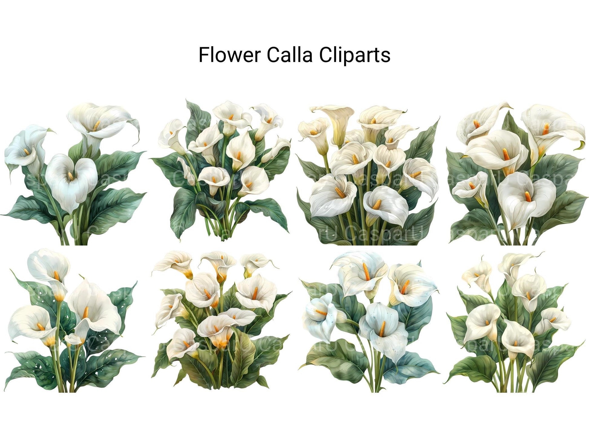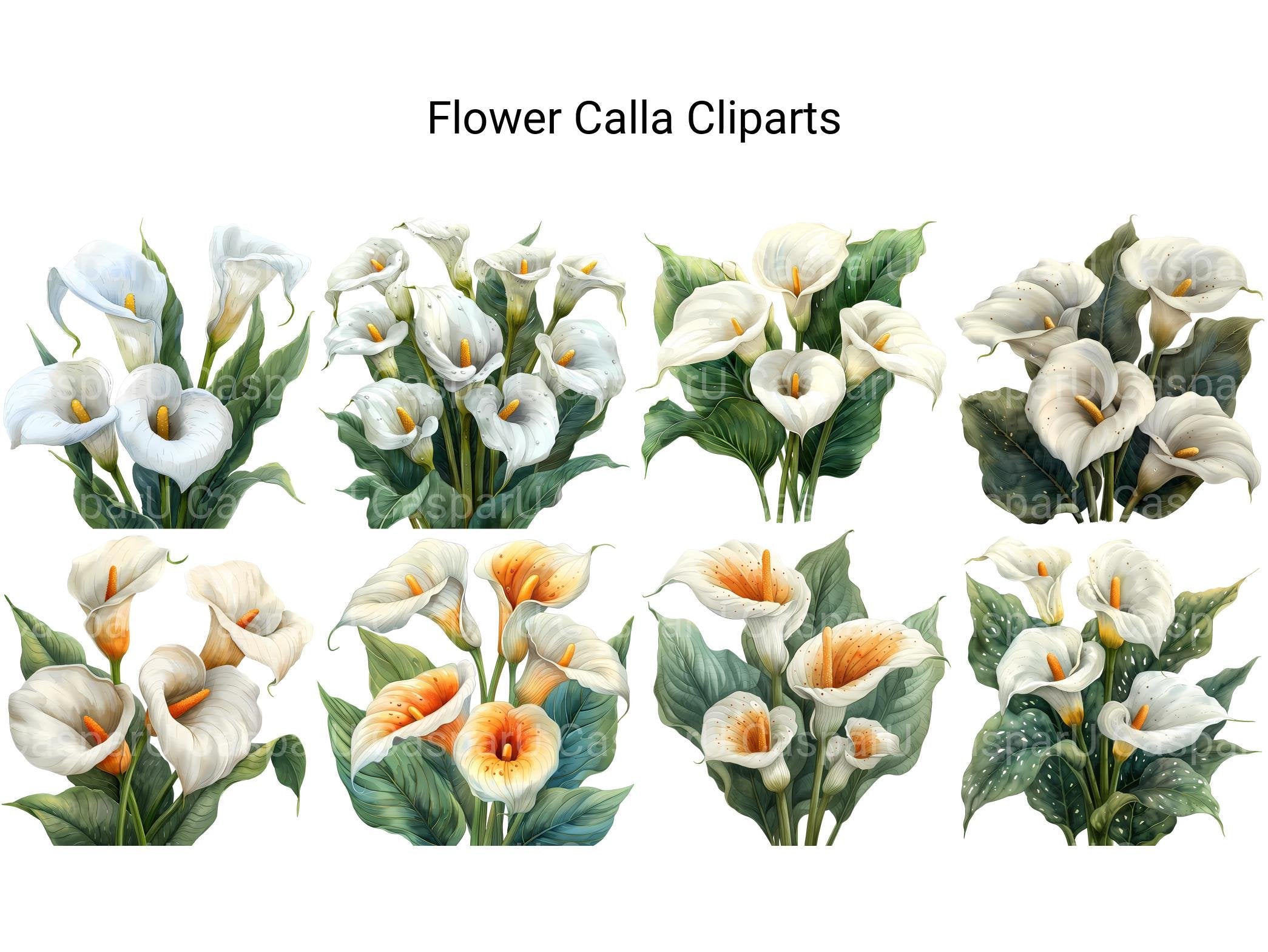 Immerse yourself in the timeless beauty of calla flowers with our digital clip art selection. These elegant clip arts capture the graceful curves and exquisite simplicity of calla lilies, making them ideal for enhancing your digital artwork, wedding invitations, and stationery. Each clip art is meticulously designed to showcase the charm and sophistication of these classic blooms.