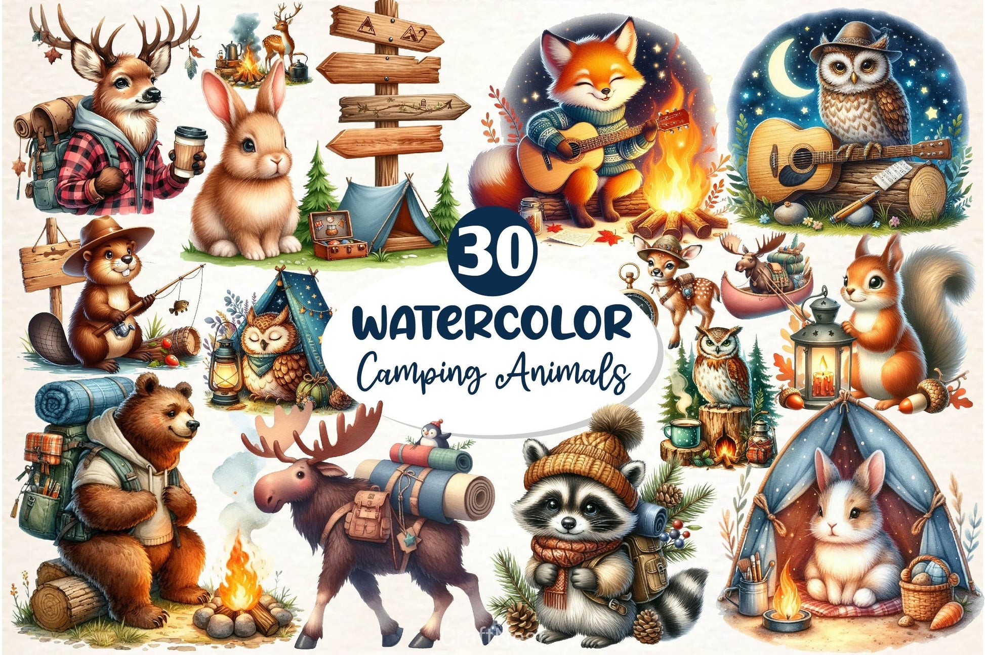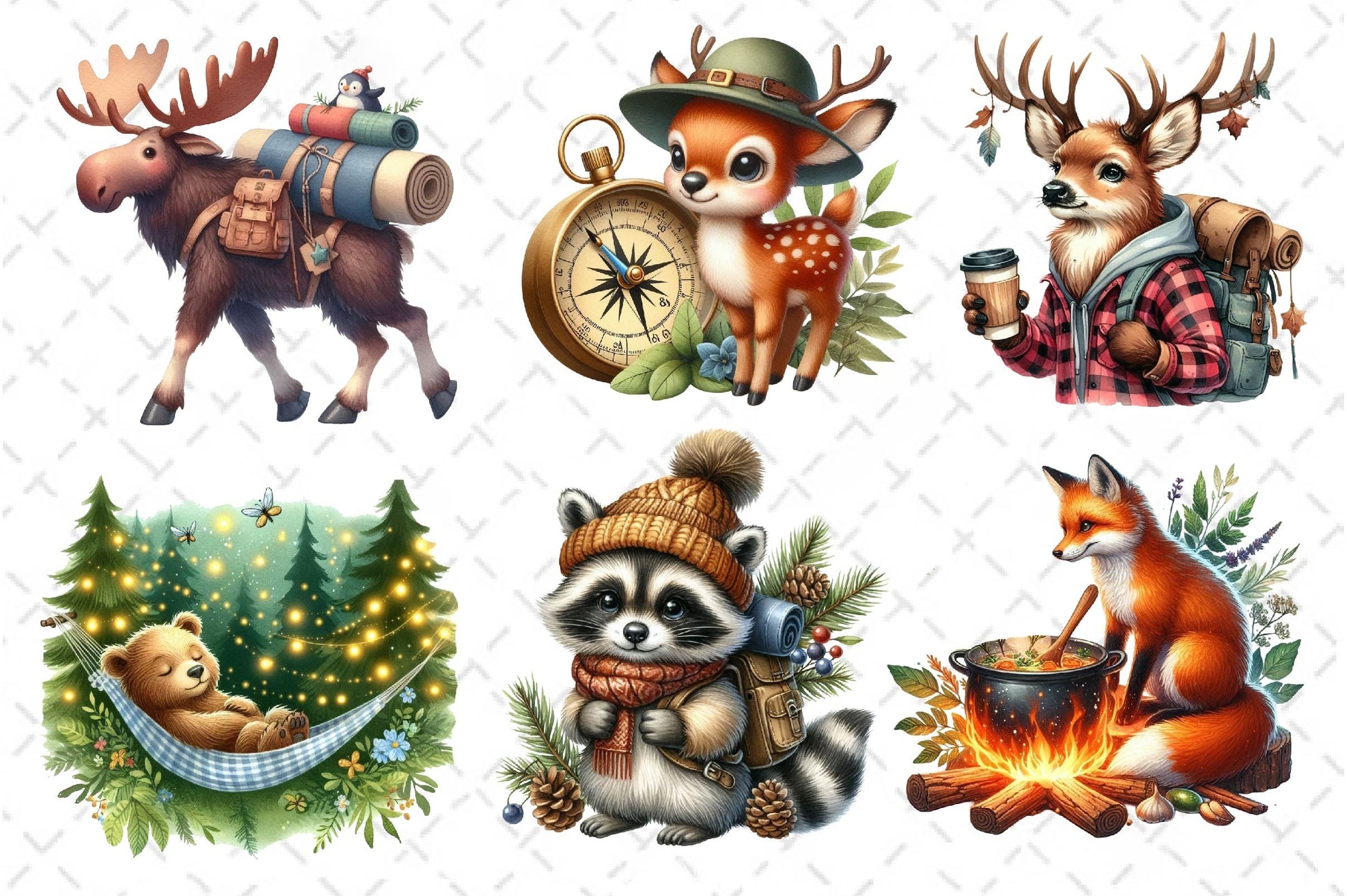 Adventure with this Camping Animals Clipart Bundle, featuring outdoor creature designs, perfect for nature animal crafts.