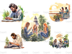 Embrace the laid-back vibe of cannabis culture with our Cannabis Lifestyle clip art. These whimsical digital illustrations depict scenes of relaxation, creativity, and camaraderie, inspired by the cannabis lifestyle, perfect for adding a touch of chill vibes and positive energy to your designs, whether for cannabis-themed artwork, lifestyle blogs, or social media posts, capturing the spirit of the cannabis community in cheerful detail.