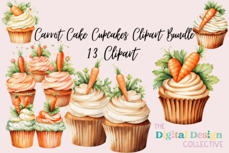 Delight in our Carrot Cake Cupcakes Clipart Bundle, featuring charming cupcake designs perfect for bakery-themed projects, invitations, and digital crafts.