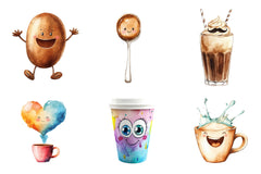 Brew with this Cartoonish Coffee Collection Clipart Bundle, featuring animated coffee designs, perfect for cartoon drink crafts.