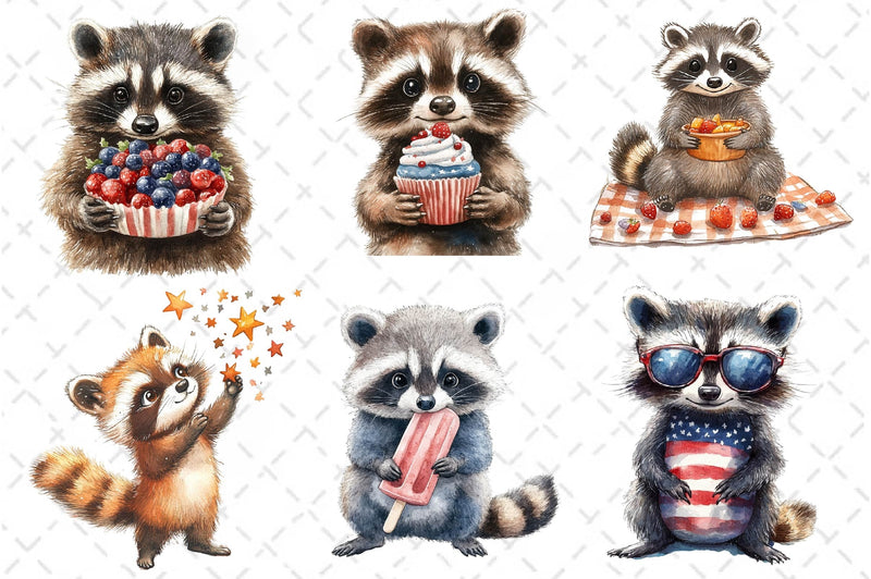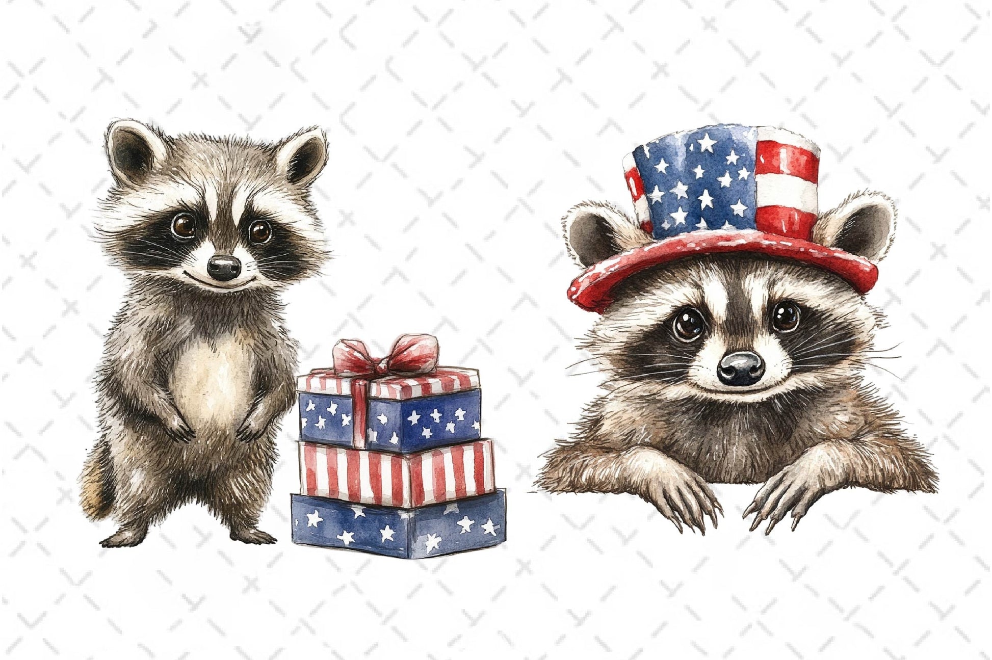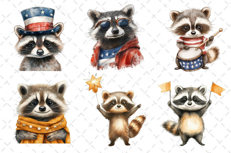 Cartoonish Patriotic Raccoon Clipart Bundle