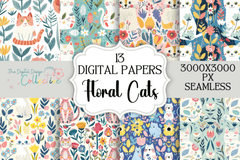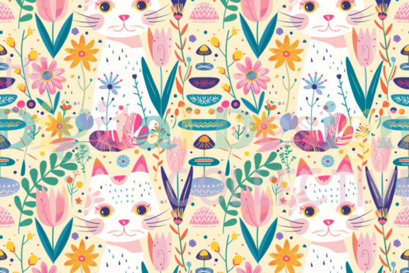 Enhance your creative projects with Charming Cat Floral Seamless Patterns, featuring delightful feline-inspired floral designs, perfect for whimsical crafts and stylish decor.