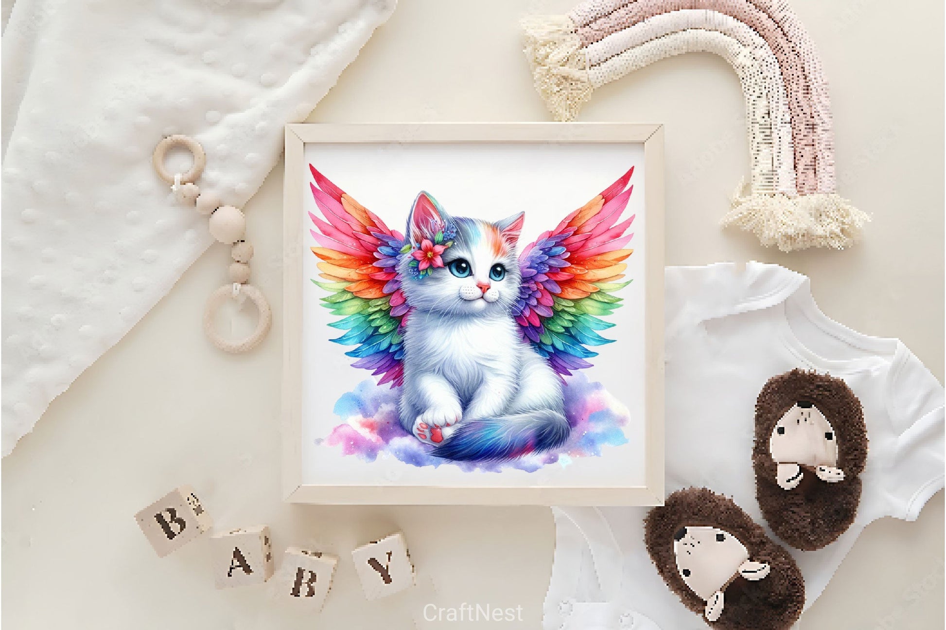 Bless with this Cat With Angel Wings Clipart Bundle, featuring heavenly feline designs, perfect for spiritual pet crafts.