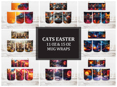 Add some cat-titude to your Easter celebrations with our Cats Easter digital mug wraps. With cute and quirky cat-themed designs, these wraps are sure to delight cat lovers of all ages. Sip from these charming mug wraps and enjoy the playful energy they bring to your coffee or tea time during the holiday season.