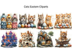 Experience the grace and mystery of Cats Eastern digital clip art, featuring sleek felines, expressive poses, and enigmatic eyes inspired by Eastern mythology and symbolism. These captivating images capture the elegance and allure of cats in Eastern culture, perfect for adding a touch of mystique and sophistication to your projects. Let Cats Eastern whisk you away to a world of feline grace and timeless beauty, inviting viewers to appreciate the enigmatic charm of these beloved creatures.
