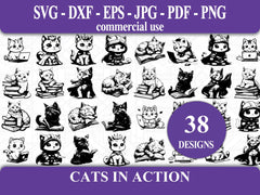 Bring energy to your creations with our Cats In Action SVG collection. Featuring dynamic illustrations of cats leaping, playing, and exploring, these designs are perfect for capturing the lively spirit of cats. Ideal for projects that need a burst of feline energy.
