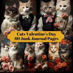 Celebrate love with our Cats-themed Valentine's Day digital junk journal. Featuring adorable feline friends, playful antics, and charming illustrations, this journal offers a purr-fect space for capturing memories, doodling, and expressing your creativity amidst the cuddly companionship and heartwarming affection of cat-inspired Valentine's Day celebrations, perfect for cat lovers and anyone who adores the sweet meows of love.
