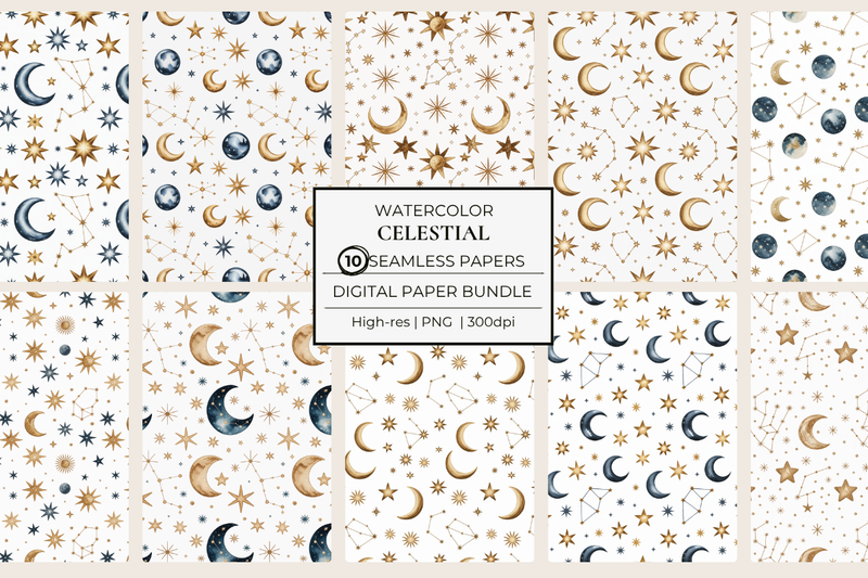 Transform your projects with Celestial Gold & Navy Seamless Papers, featuring luxurious celestial patterns perfect for elegant invitations, sophisticated scrapbooking, and stunning digital designs. Elevate your creative endeavors with these versatile, high-quality papers that blend opulent gold with deep navy hues, ideal for weddings, parties, and artistic crafts. Discover the magic of celestial elegance today!