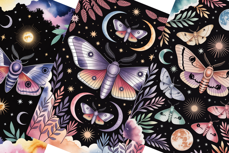 Unleash your creativity with Celestial Moths Junk Journal Papers, featuring ethereal moth designs perfect for whimsical scrapbooking and artistic journaling projects.