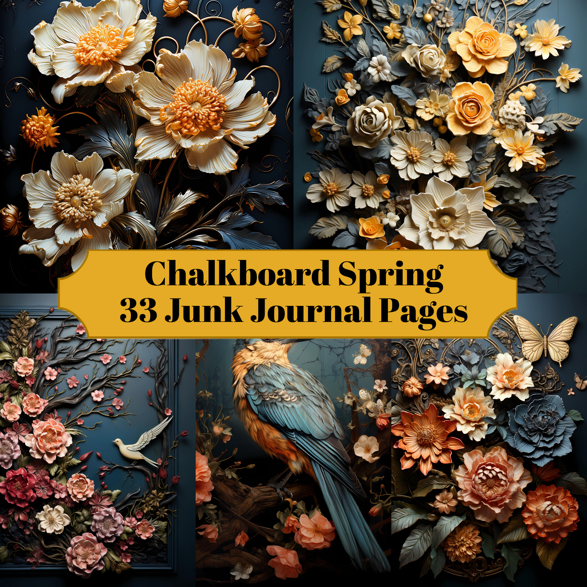 Embrace the rustic charm of spring with our Chalkboard-themed digital junk journal. Featuring chalk-inspired designs, hand-drawn motifs, and whimsical elements, this journal offers a quaint space for capturing memories, doodling, and expressing your creativity amidst the cozy warmth and artisanal charm of a chalkboard-inspired spring, perfect for those who adore the simplicity and elegance of handcrafted creations and the rustic beauty of chalkboard art.