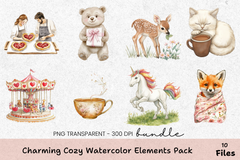 Enhance your creative projects with the Charming Cozy Elements Clipart Bundle, featuring delightful and whimsical designs perfect for cozy home decor, scrapbooking, and personalized gifts. This versatile collection offers a unique blend of charming elements, ideal for adding a touch of warmth and creativity to any project. Perfect for digital planners, greeting cards, and more, these high-quality cliparts are a must-have for any craft enthusiast looking to infuse their work with charm and coziness.