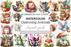 Enchant with this Charming Fairy Woodland Animals Clipart Bundle, featuring magical forest creatures, ideal for fantasy crafts.