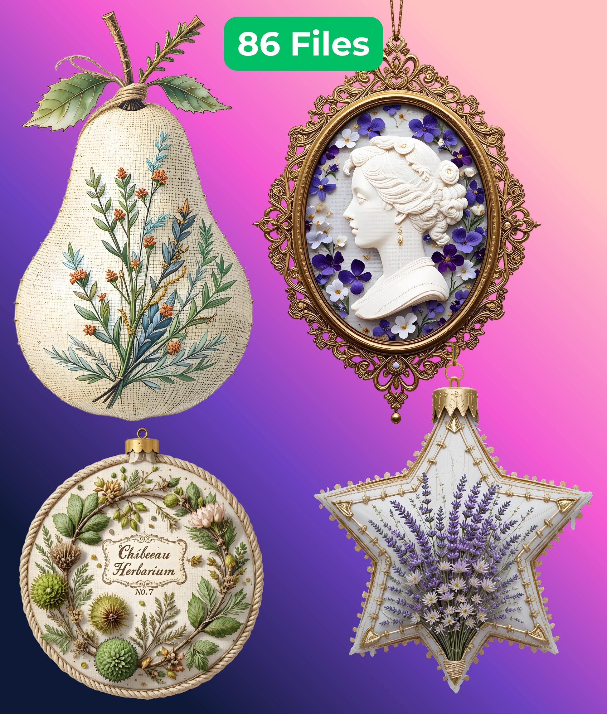 Chateau Herbarium Ornament Clipart Bundle
