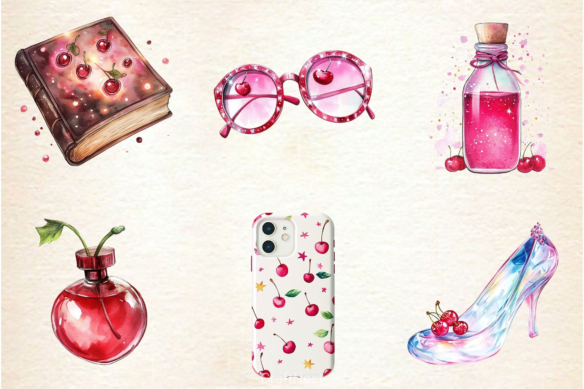 Enchant with this Cherry Red Magical Summer Clipart Bundle, featuring mystical seasonal designs, perfect for magical summer crafts.
