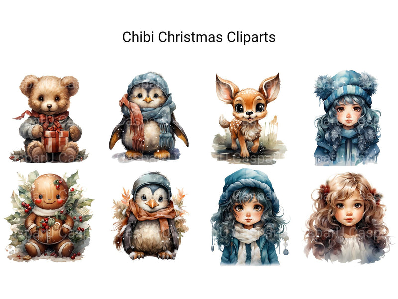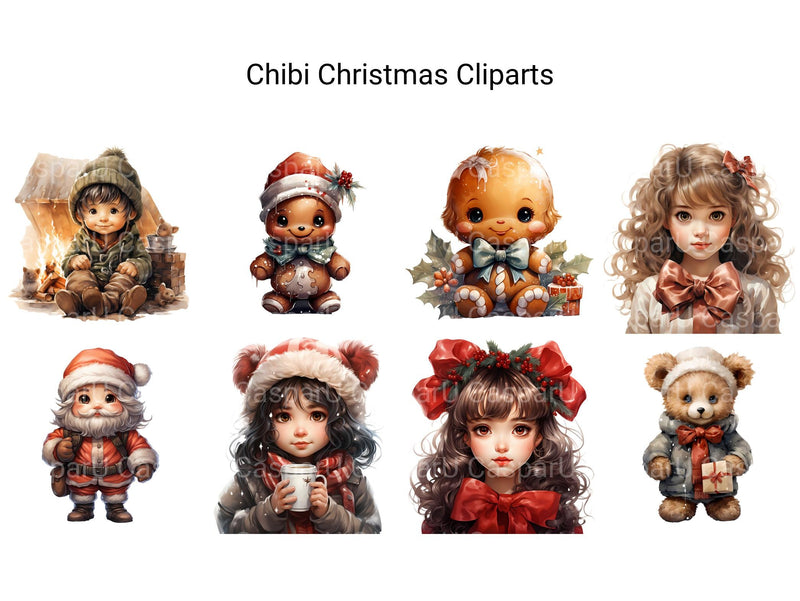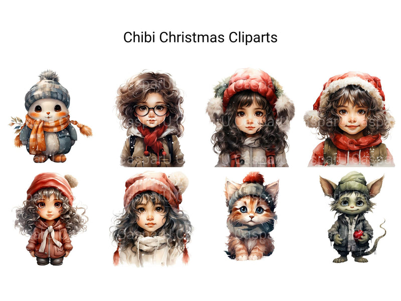 Experience the magic of Christmas in adorable Chibi style with our charming Chibi Christmas clip art. These digital illustrations feature cute and lovable characters, bringing a playful and whimsical touch to your holiday designs. Whether for cards, gifts, or decorations, these Chibi-inspired graphics will delight viewers of all ages, capturing the joy and innocence of the season in delightful detail.