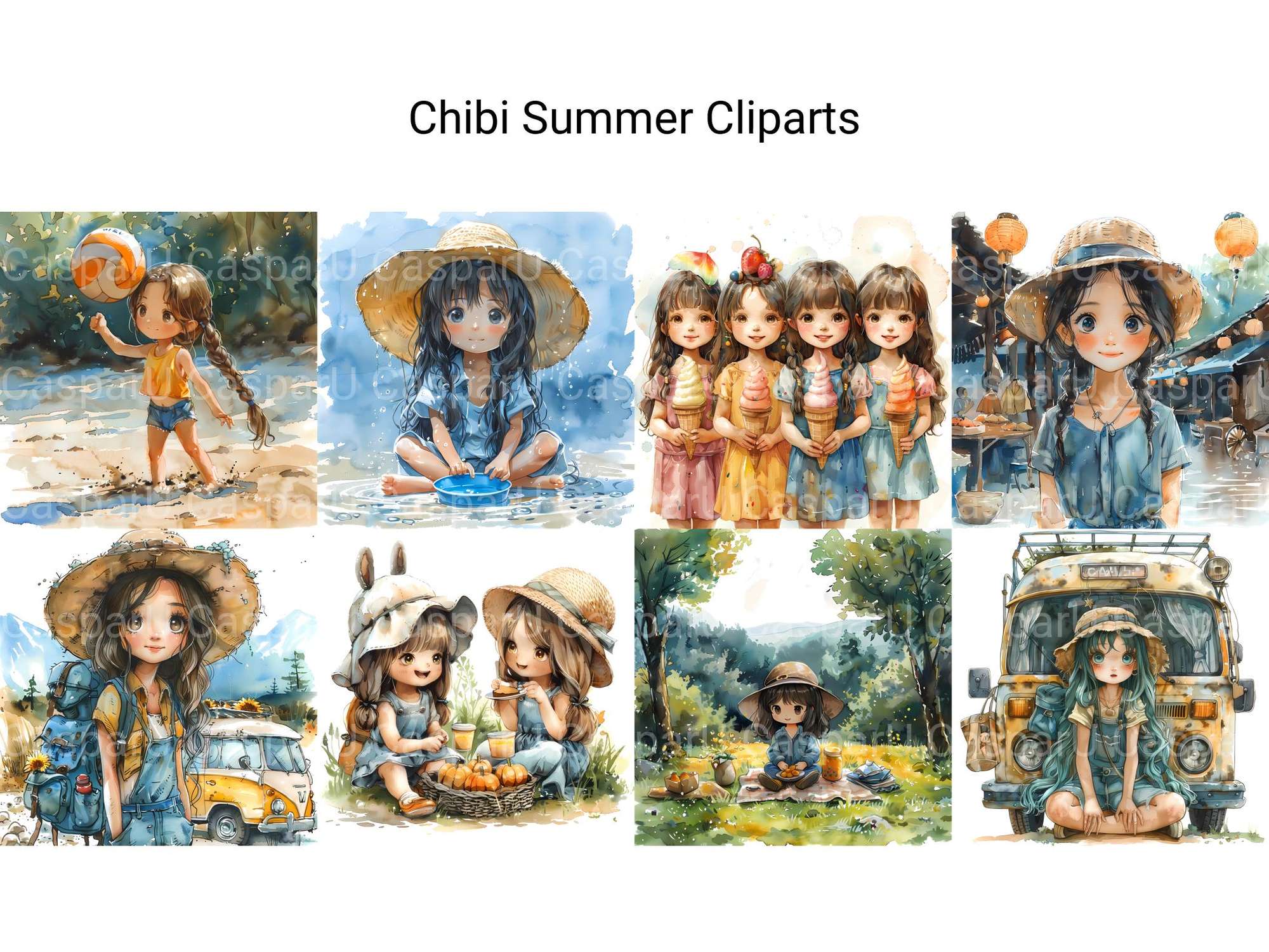 Bring a touch of cute to your summer projects with our Chibi Summer clipart, featuring adorable, stylized characters enjoying sunny days and fun activities. Each chibi character is full of personality and charm, perfect for adding a whimsical and cheerful vibe to your summer designs.