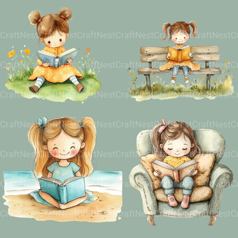 Read with this Children Reading 12 Clipart Bundle, featuring reading children designs, ideal for student book crafts.