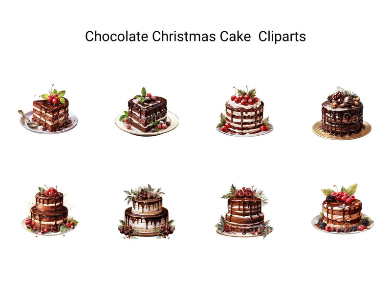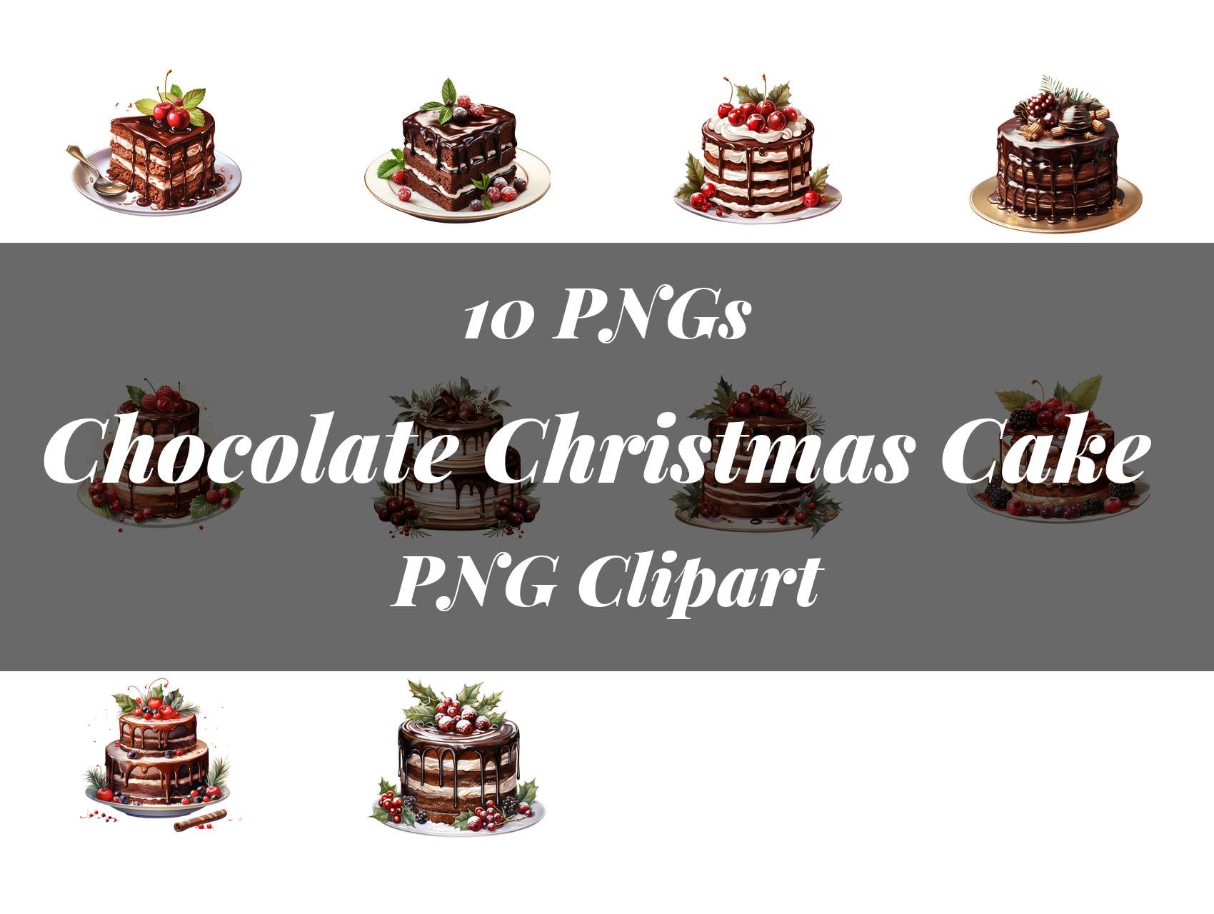 Indulge with this Chocolate Christmas Cake Bonus Clipart pack, adding extra cake designs, perfect for festive baking projects.