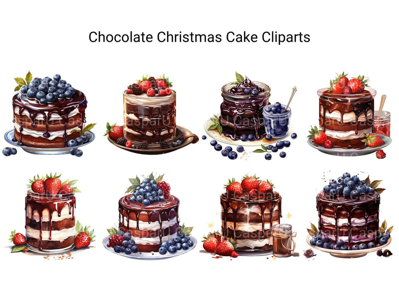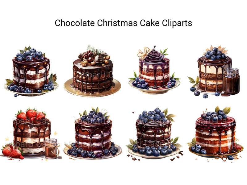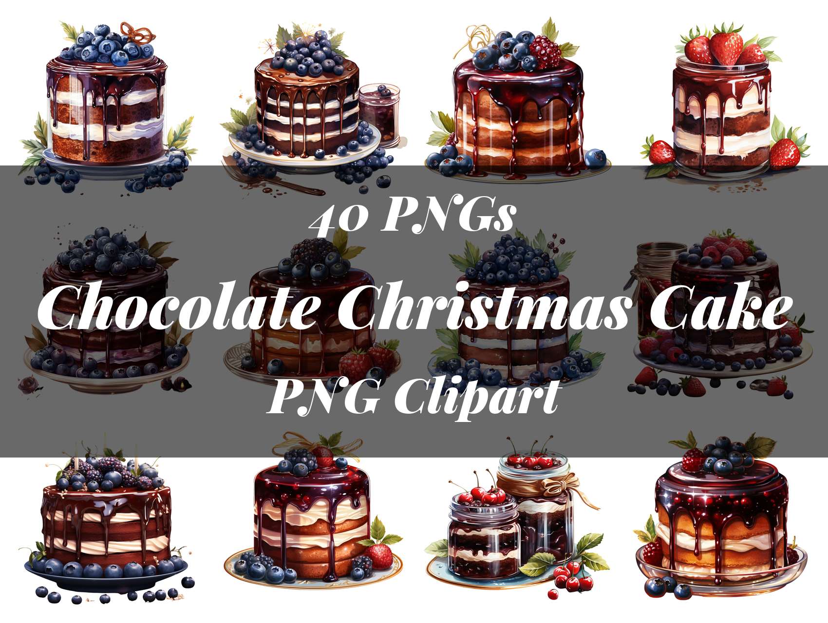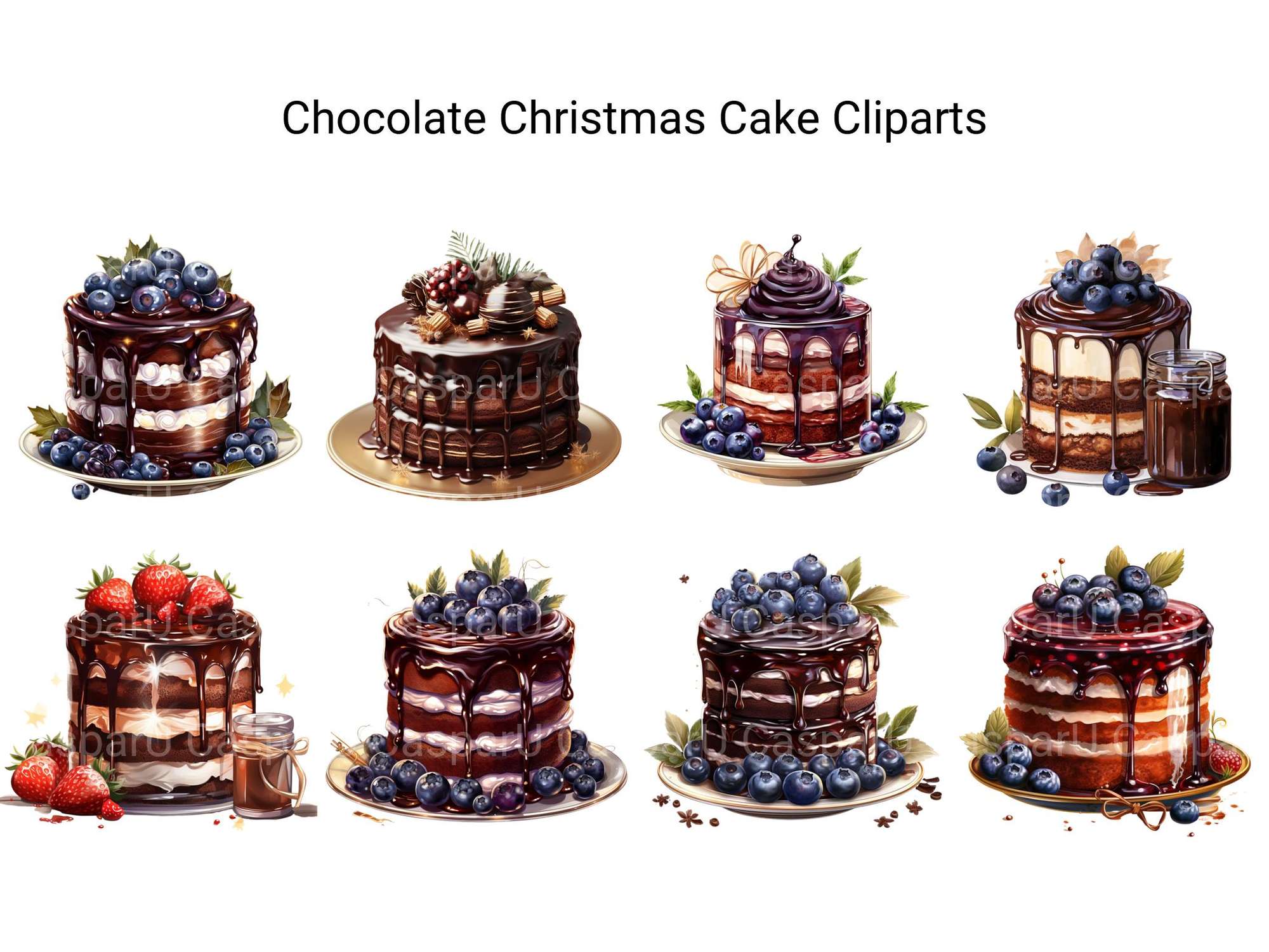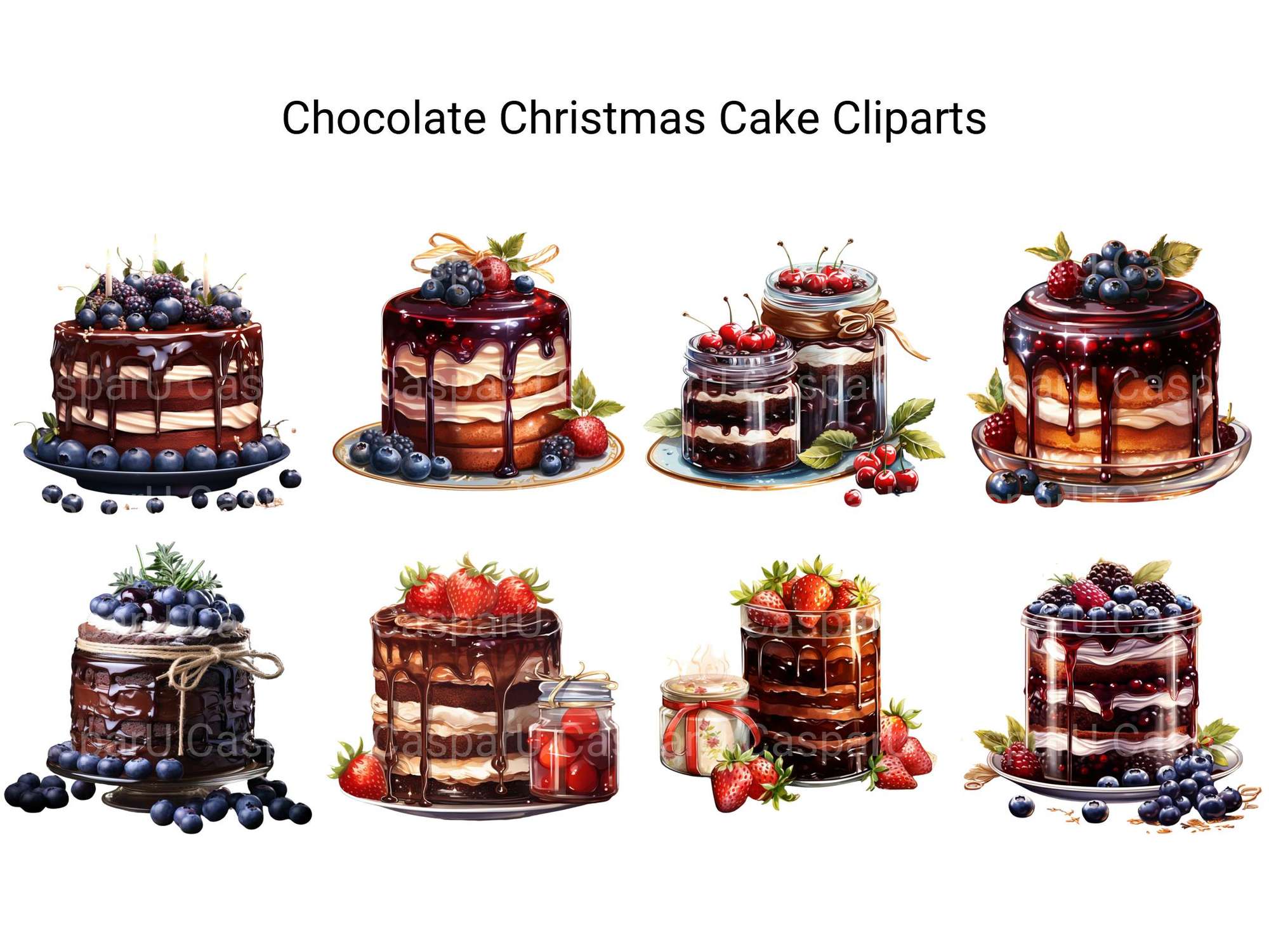 Celebrate with this Chocolate Christmas Cake Clipart set, featuring rich cake designs, ideal for holiday dessert crafts.