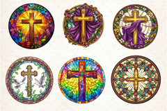 Christian Cross Round Stained Glass Art Clipart Bundle