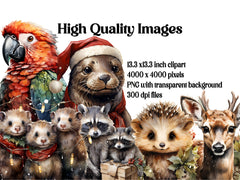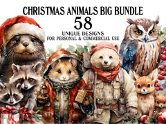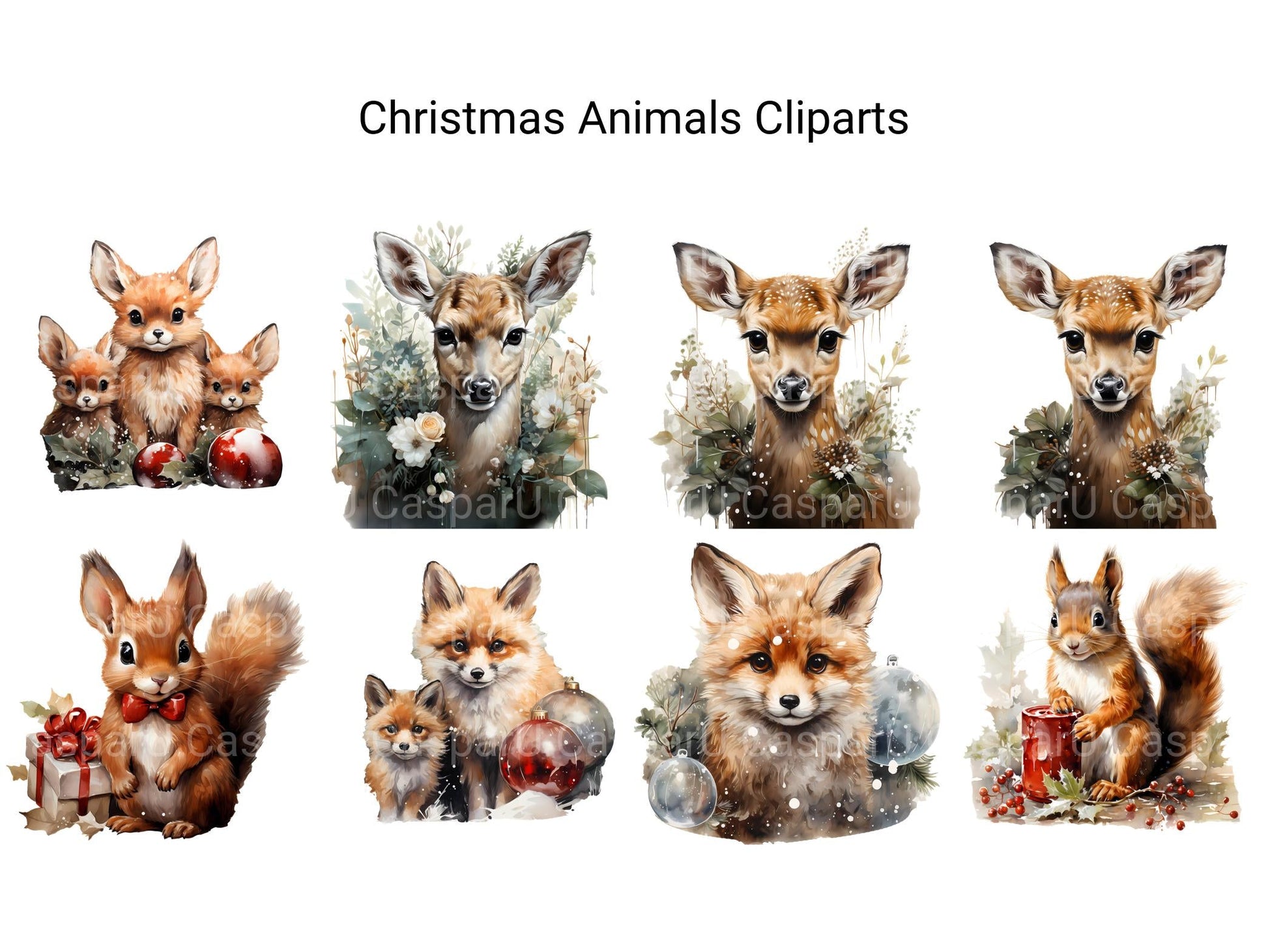 Celebrate the holidays with our adorable Christmas Animals clip art. These digital illustrations feature a charming array of festive critters, from cuddly bears to jolly reindeer, adding a touch of whimsy and delight to your seasonal projects. Whether for cards, gift tags, or children's activities, these merry animal companions will bring smiles and joy to all who encounter them, spreading the spirit of Christmas in the most heartwarming way.